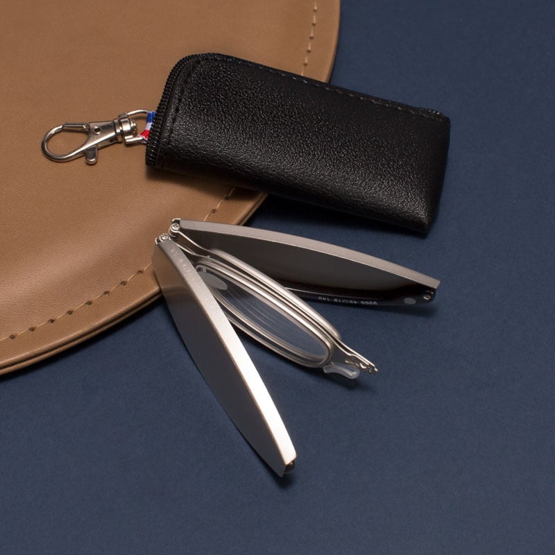 Reading glasses with mini holster can be quickly folded, and retractable spring arms are easier to store and carry.